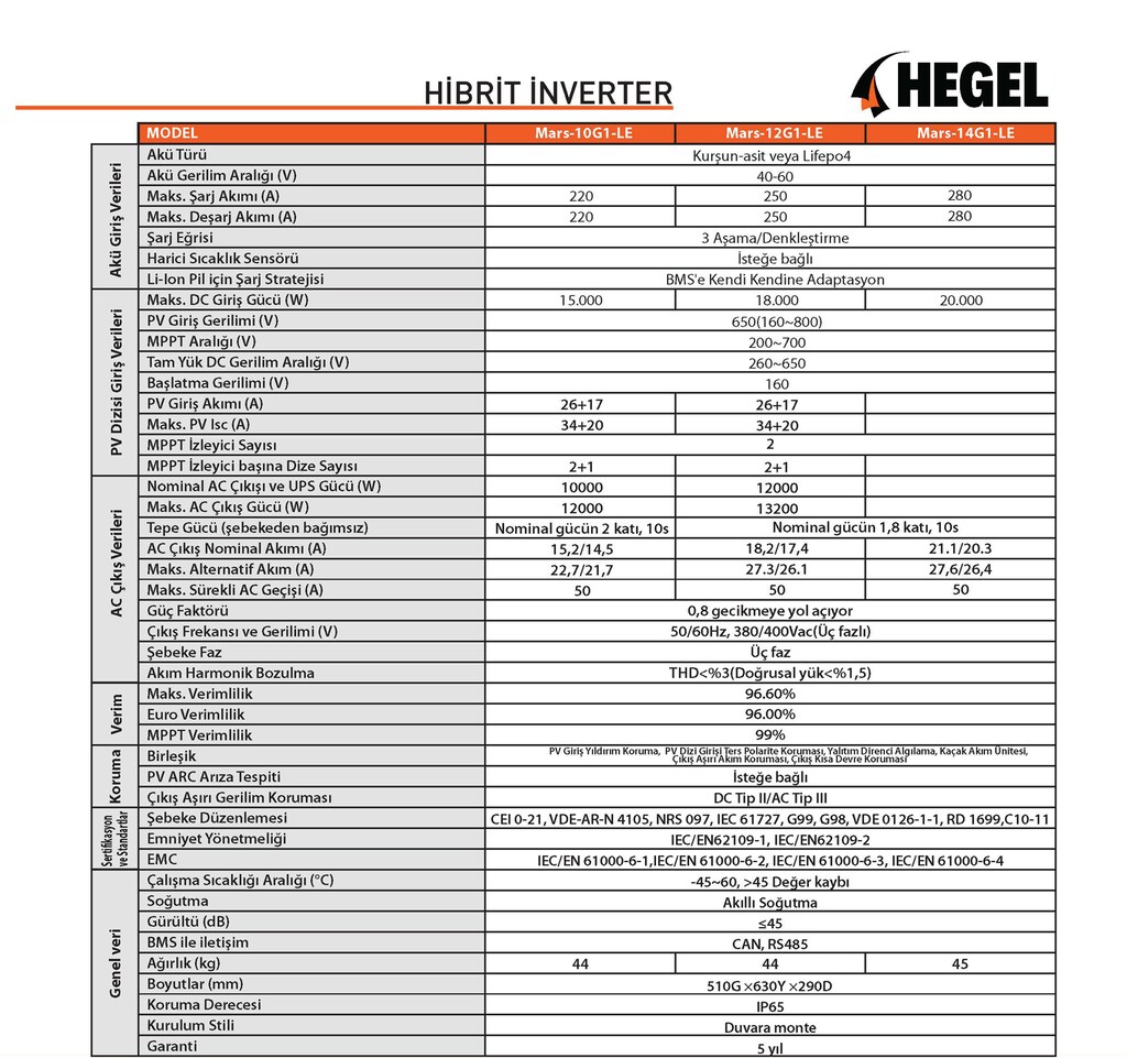 Yerinde kurulum ve kullanım rehberliği hizmetleri sağlayarak satın almanızı ve kullanmanızı kolaylaştırıyoruz. Hegel CHISAGE ESS hibrit inverter %100 dengesiz çıkışı destekleyerek tüm fazlar arasında verimli güç dağıtımı sağlar.