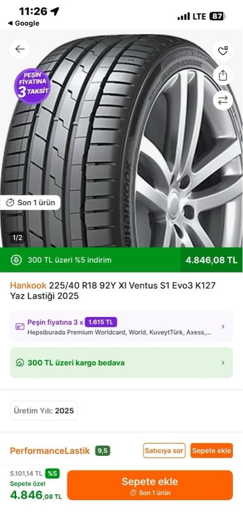 6 Mar 2026nısan 2023 de alındı. ürünü arac degısıklıgınden dolayı satıyorum. toplam 4 adet lastıge 9.000 tl talep edılmektedır. kusursuzdur. alıcısına hayırlı olsun. lastık 2019uretım depoda duruyor