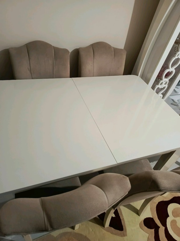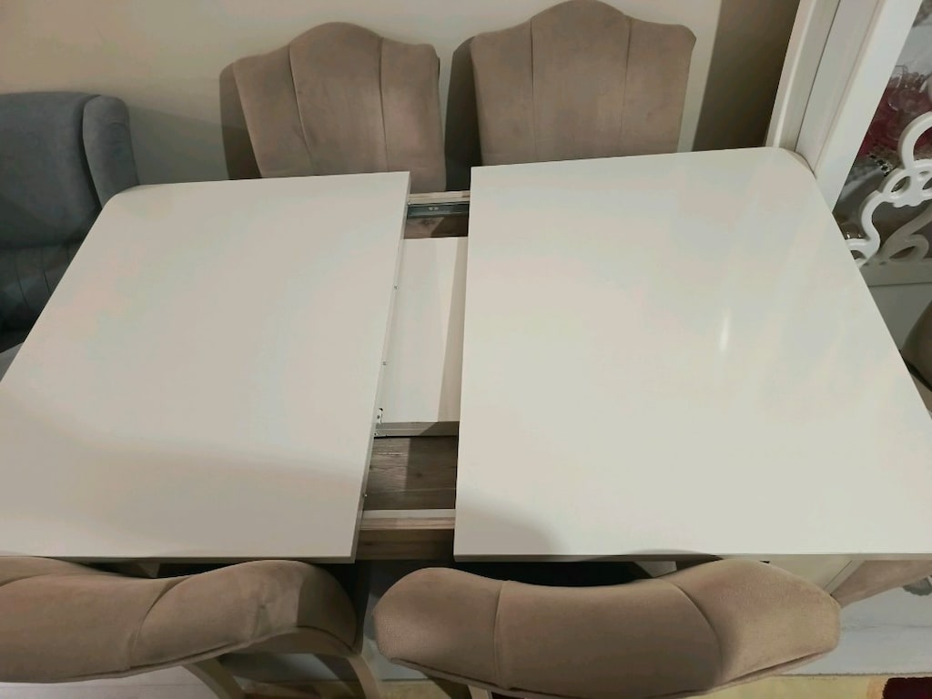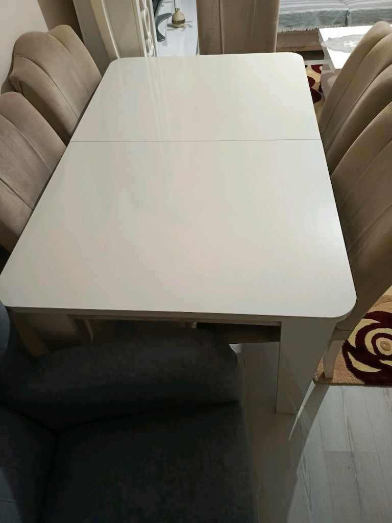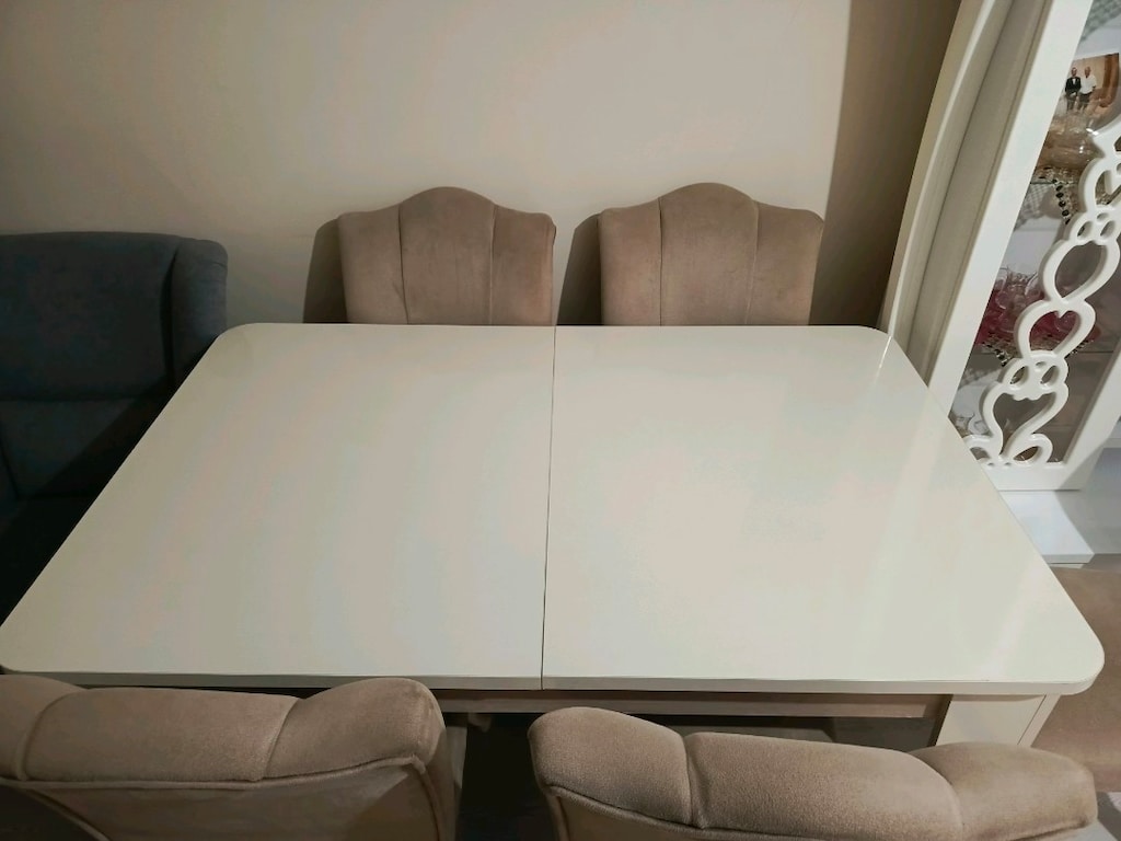 1 Nis 20266 Kişilik yemek masası takımı, fazla kullanılmamiştir. Tek sorunu sandalyelerden bir tanesi sallanıyor. Acılıp genişleyebiliyor. Çok sağlam malzemesi vardır. Giriş katta olduğu için çıkartılması kolaydır.