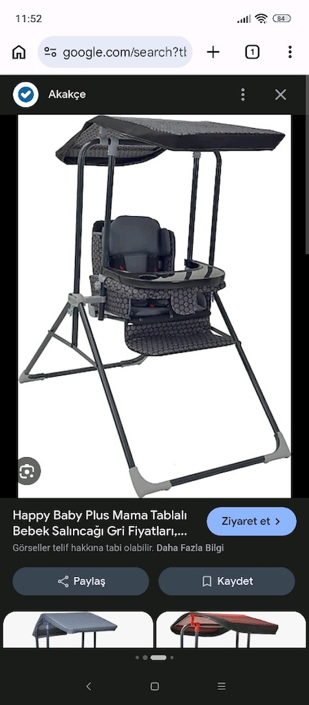 Sağlam eksiksiz Mama sandalyeli tenteneli salıncak