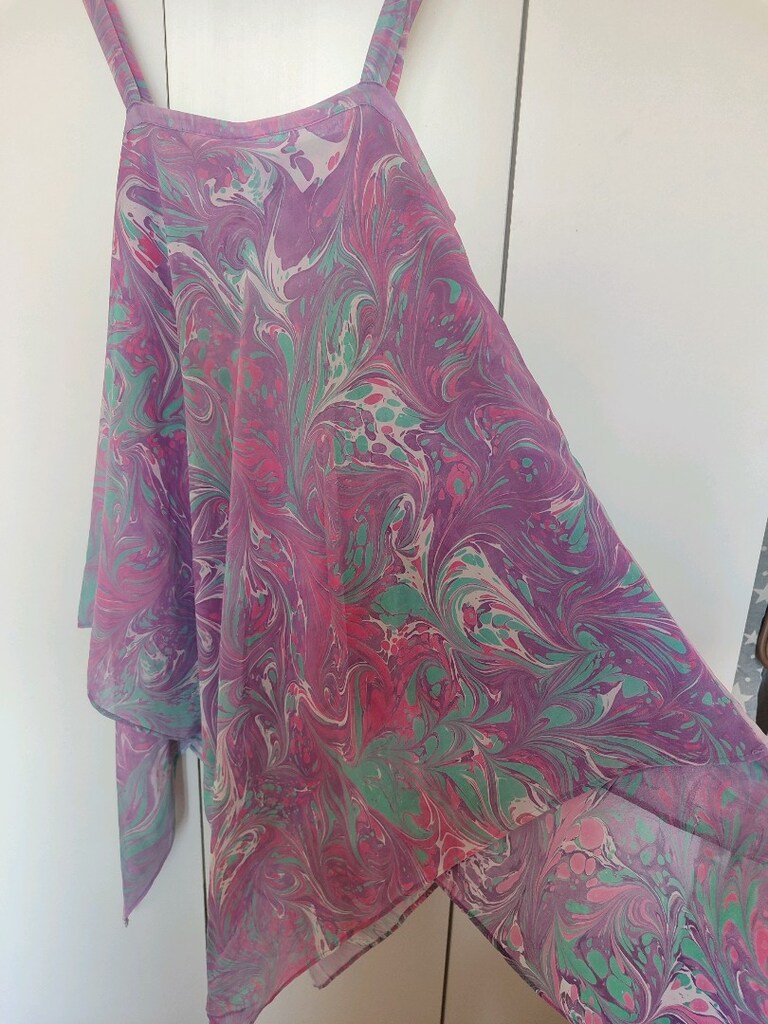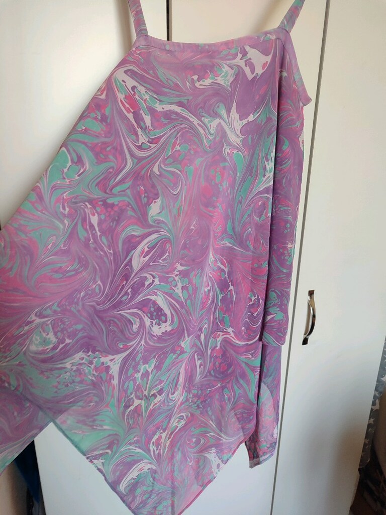 7 Mar 2026Askılı, straplez yaka, bol kesim ve drapeli tunik. Pastel desenli, ipeksi dokulu bohem tarzda. ebru boyama .terzi dikişi 38-40 beden uyumlu