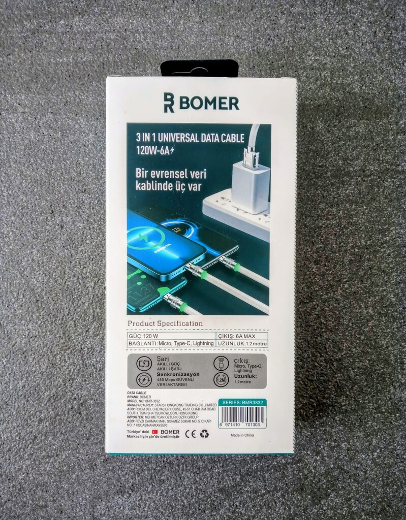 BOMER 3 IN 1 UNİVERSAL DATE CABLE 120W-6A