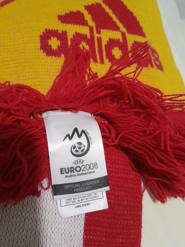 18 Mar 2026Ikinci el, (Euro 2008, UEFA) Ispanya Espana futbol takimi taraftar yun atki satilik. Adidas imalati, orjinal, etiketi kodu fotografta mevcuttur...