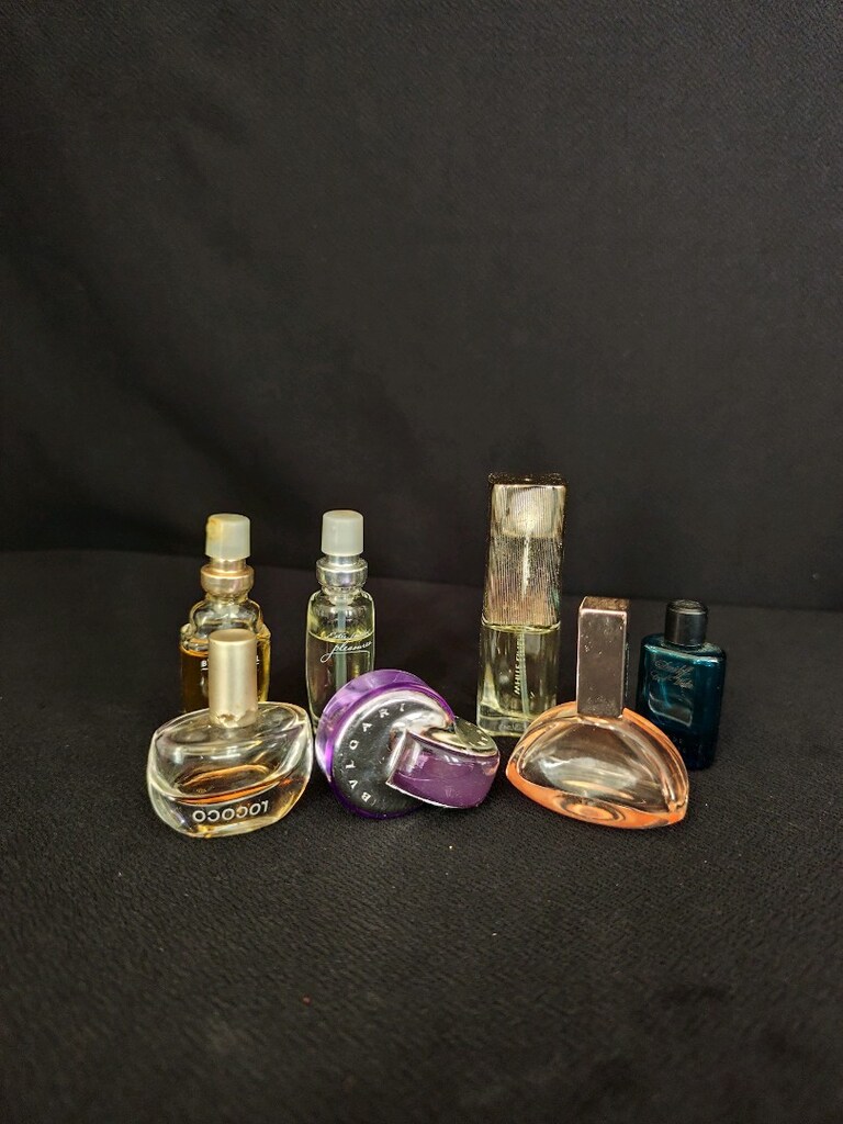 ESTEE LAUDER WHITE LINEN , DAVIDOFF Cool Water , CALVİN CLEİN, Bvlgari Omnia Amethyste , Farklı şişe tasarımlarına sahip 7 parça mini boy kadın parfümü seti. Deneme veya seyahat için uygun. fotoğrafları iyi inceleyin bazıları boş bazıları dolu bazıları yarım HEPSİNİN FİYATIDIR