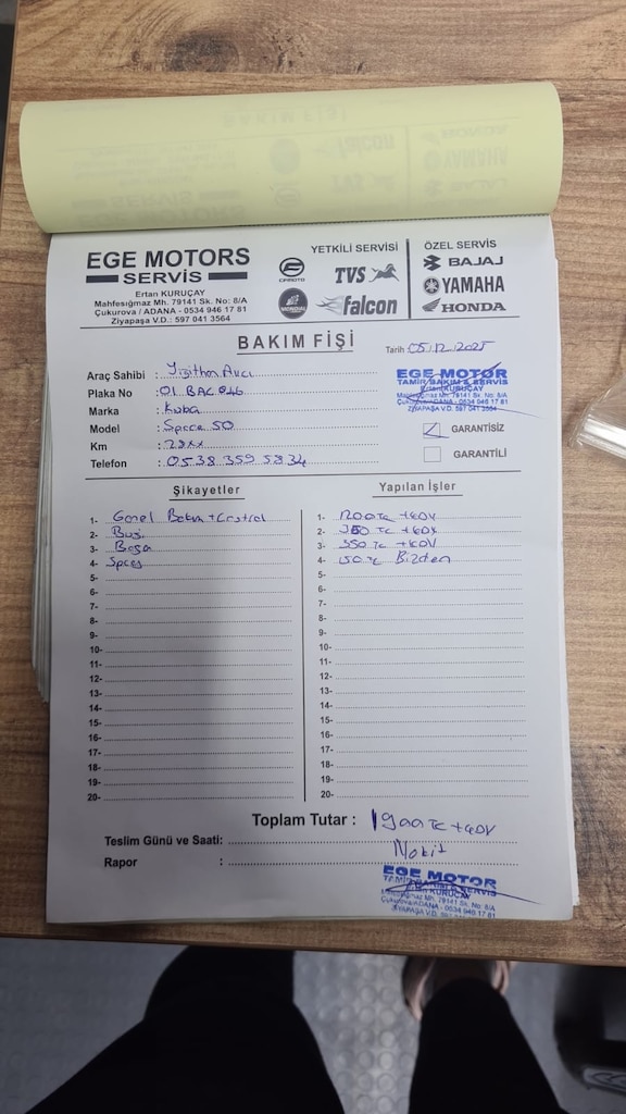 31 Mar 2026Merhabalar, motorum Space 50 Pro Max 2024 model ve trafiğe 2024 Aralık çıkışlıdır. Fabrikasyon çıkışlı 80'liktir. 2850 km'de iken genel bakımlarını 5 Aralık 2025 tarihinde yaptırdım. 2950 km'de iken kalkışta ufak titreşim hissedip gerek olmadığı halde arka varyatörü değiştirdim. Şu an gerçekten sıfır gibi. Motorumu ufak tefek işlerimi halletmek için almıştım ama artık ihtiyacım kalmadı. Zaten hiç kullanmadım desem yeridir. 3 ayda 180km yaptım. Aracıma hep sıfır gibi binmek gibi bir huyum olduğu için bakımlarını hiç eksik etmem, değişime gerek bile olmayan ne varsa değişirim ki beni üzmesin, sıfır gibi olsun. :) Motorumun koruma demirlerini çıkardım daha güzel bir görüntü için, kendi emeğimle kaplama sticker uyguladım.(Egzoz koruma kapağı, Sağ grenaj, Çamurluğun sağı, Plakalık altı) İsteyen çıkarabilir, iz yapmaz. Dörtlü flaşör tuş takımı alıp dörtlü yaptım. Paspas yaptırdım. Paspas ve Telefon tutacağı hediyemdir. Koruma demirlerini de vereceğim. İsteyen geri takar. Gözüm gibi baktığım motorumu ihtiyacım kalmadığı için satıyorum. Alan kişiye hayırlı uğurlu olsun şimdiden. Kilometre değişiklik gösterebilir, kullanıyorum arada.