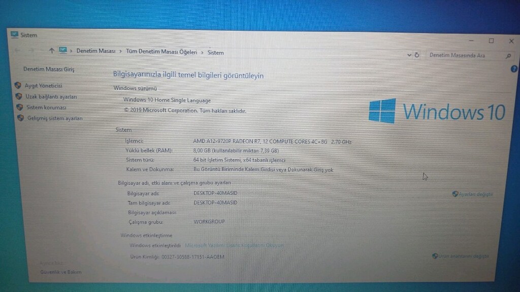 Cihazı satacağım için içine Win 10 format attım. Sıfır bir şekilde beklemektedir.