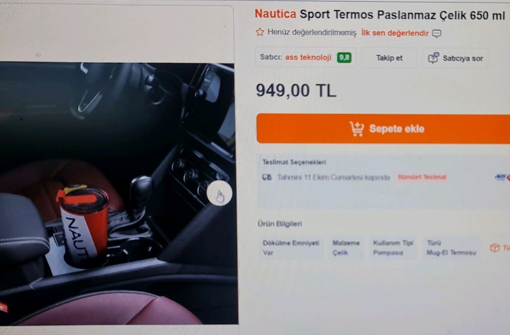 9 Mar 2026Nautica Sport Termos Paslanmaz Çelik 650 ml. SIFIR KUTUSUNDA. Sayfamda farklı termosları bulabilirsiniz. 12 saat sıcak, 12 saat soğuk tutma özelliği. Sıfır kutusunda. Süper bir ürün. Pipetli kapak, flip kapak, Çapraz Askı, Vakum Yalıtımlı Tumbler, 2 Adet Pipet, BPA İçermez, 18/8 Paslanmaz Çelik, 3 Kat İzolasyon, Terleme Yapmaz, Sızdırmaz. Detay fotoğrafları size fikir verir. Sayfamda Ayrıca, kozmetik, kırtasiye, bebek, saç bakım, mutfak, el aletleri, hediyelik ürünleri ve ev ihtiyaçlarınızı farklı çok çeşit ürün bulabilirsiniz. İster siz kullanın, ister hediye alın. Bazen şehir dışında oluyorum. Kargoda ve buluşmamızda gecikme olmaması için lütfen mesaj atınız. Aklınıza gelen, soruları lütfen sorup karar veriniz. Tüm fotoğraflar bire bir çekim ve detaylı açıklama yapıldığından İade yoktur