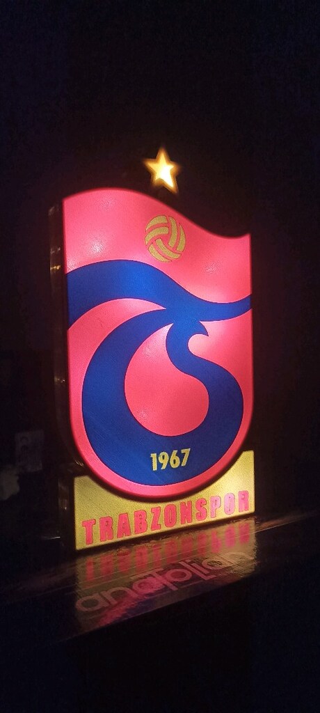 6 Mar 2026Sıfır üründür. 3D yazıcıda sert plastikten üretilmiştir. Yaklaşık olarak 20x10x3 cm boyutlarındadır. Pilli sarı ışık ile gelecektir. İsteyene USB ile çalışan model de yapılabilir. Yanında 1 adet Trabzonspor anahtarlık hediyedir. Tekli alım yapmak için iletişime geçebilirsiniz.