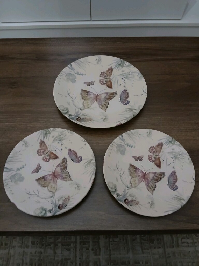 Kelebek Desenli Bej Pasta Tabağı Seti