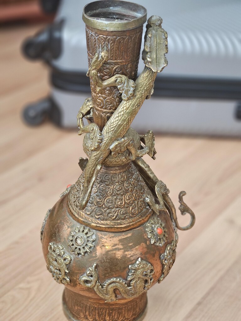 1900 lerden kalma çin vazosu antikadır prinç ve bakımdan yapılmıştır